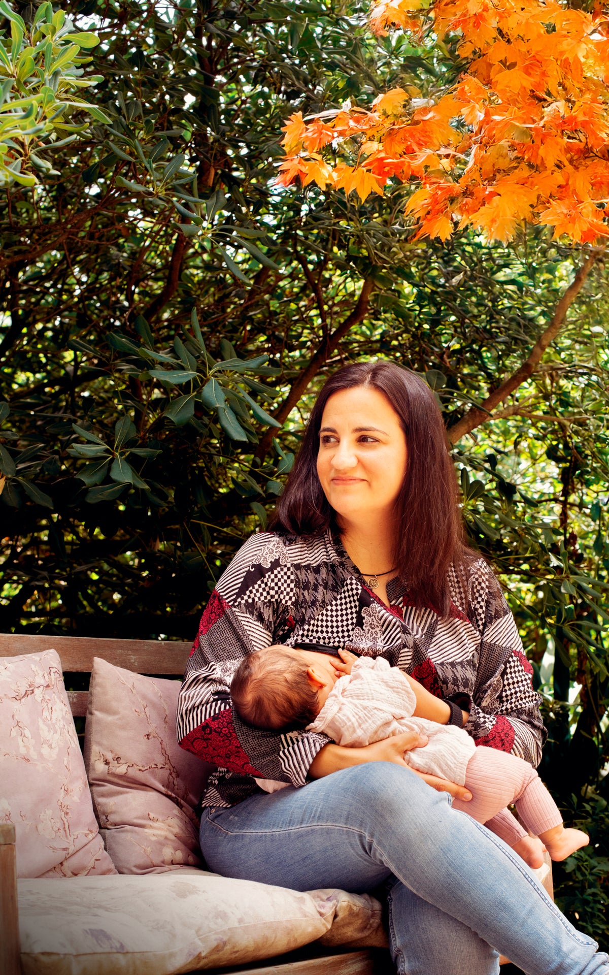 Con cuello Mao y manga larga, esta camiseta combina con facilidad tanto con jeans como con prendas más formales. Está disponible en seis estampados distintos para que elijas el que mejor refleja tu esencia. Su tejido cálido la convierte en la aliada perfecta para entretiempo y días frescos, mientras que las cremalleras invisibles en el pecho ofrecen una lactancia práctica y discreta en cualquier momento.
